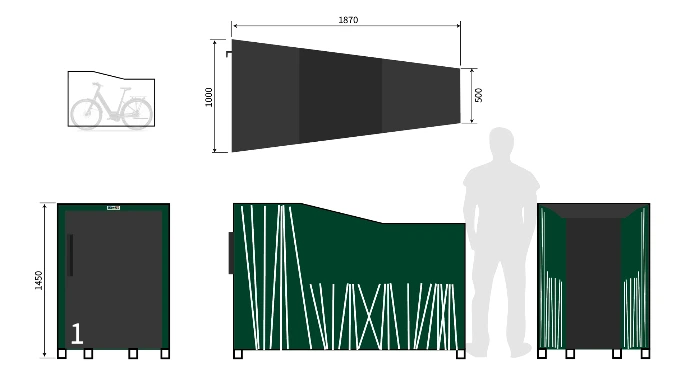 Vous installez un premier lot de box, puis vous étendez sans remettre à plat tout le projet de stationnement. Chaque box est compatible avec toutes les largeurs et profondeurs de vélos.