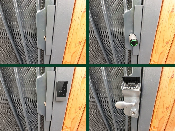 - Cerraduras: teclado numérico, cilindro, etc.