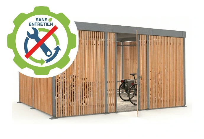 Lisière fermé convient bien aux collectivités, entreprises, établissements publics et sites recevant du public qui veulent sécuriser les vélos avec une présence visuelle plus douce qu'un local métallique classique. C'est un bon choix quand le site est visible et que l'intégration architecturale compte autant que la sécurité.