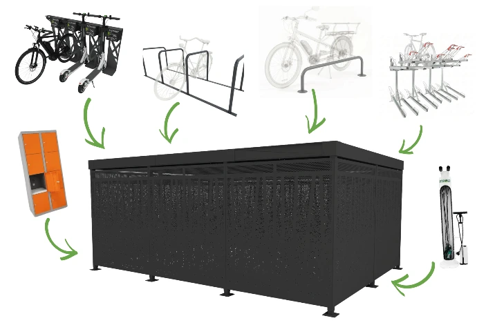 | Format 8 x 6 m | 6 m x 8 m | 18 vélos | Collectivité / site dense |