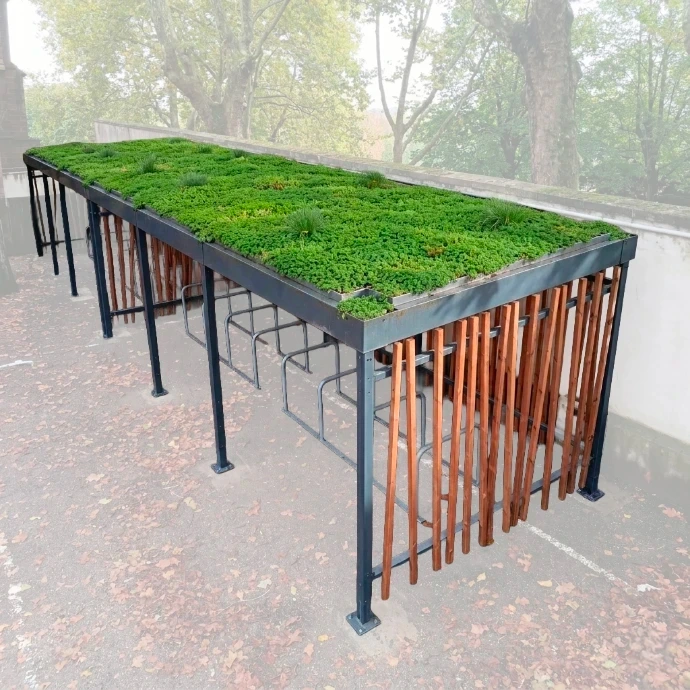 Parce qu'elle améliore l'intégration paysagère, limite l'effet trop métallique d'un abri et renforce l'image écologique du projet sans changer la fonction principale du stationnement vélo.
